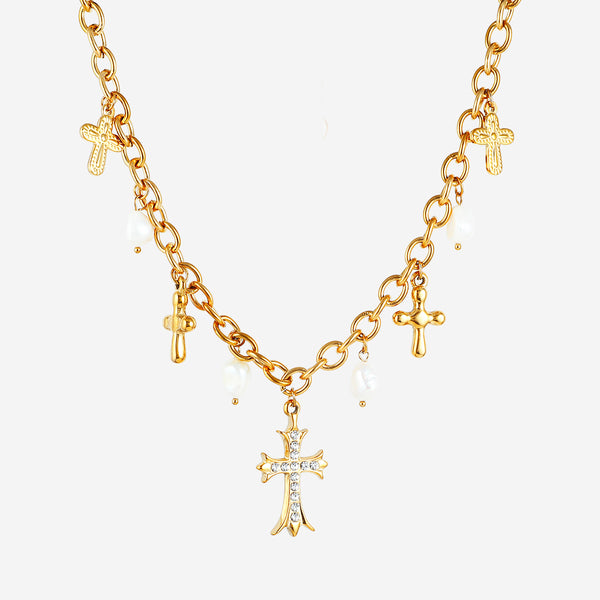 - Élégance intemporelle avec des perles raffinées - Croix symbolique pour une touche spirituelle - Breloque délicate ajoutant du charme - Chaînette de réglage de 5 cm pour un ajustement...