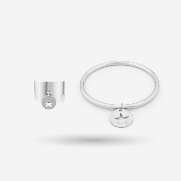 - Élégant jonc étoile orné de strass scintillants - Disponible en finitions doré et argenté pour un look intemporel - Fabriqué en acier inoxydable durable et résistant - Diamètre de...