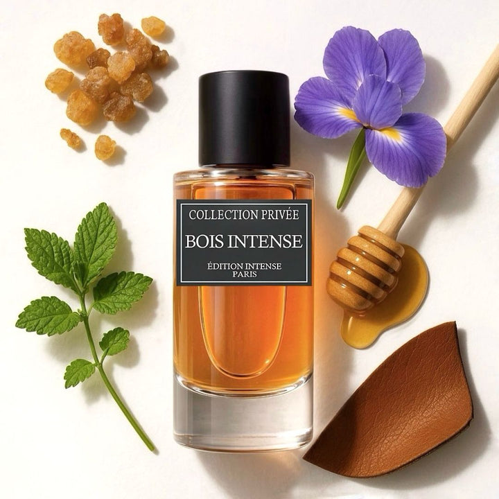 - Parfum nommé Bois Intense avec des notes de tête d'Oliban et d'Iris
