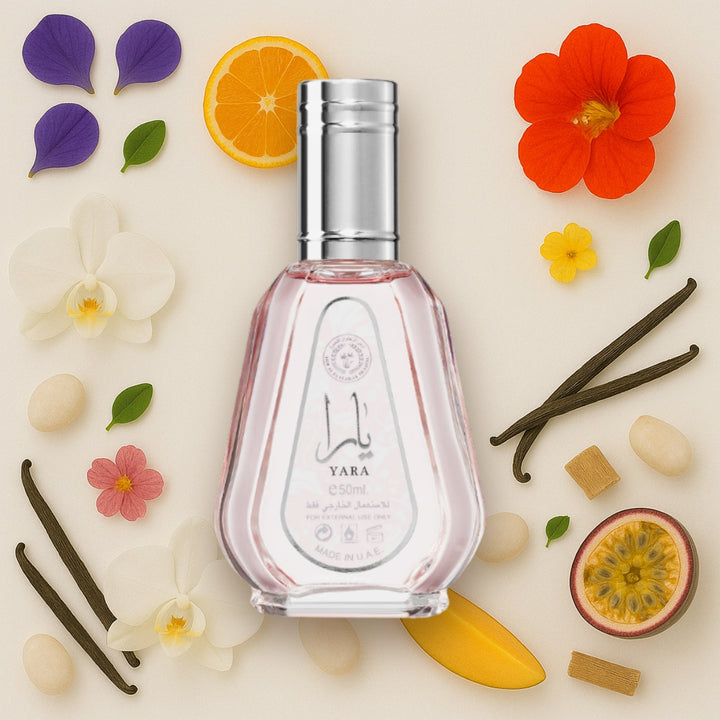 - Plongez dans un mélange floral et fruité qui vous donnera un coup de fouet pour chaque jour. L’Eau de Parfum Lattafa Yara illuminera votre journée de couleurs vibrantes et vous fera vous sentir vraiment féminine et confiante. Il accentuera votre sensualité naturelle et vous rendra irrésistible. Faites ce que vous voulez, un petit coup de pouce est toujours le bienvenu.