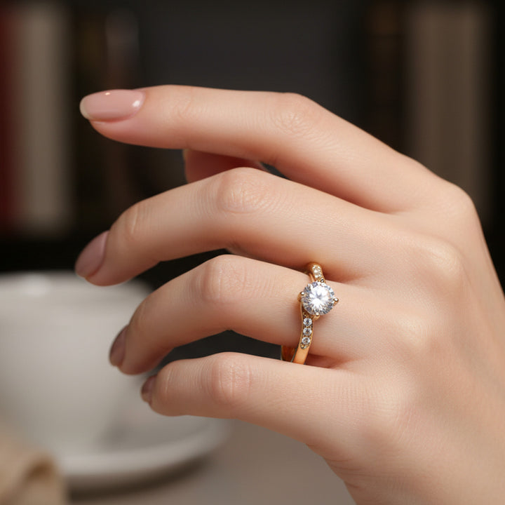 Cette bague se distingue par un design simple et élégant, avec un diamètre de 18 mm. Elle est ornée d’un gros cristal central sublimé par de petits cristaux scintillants. Lorsqu’elle est portée, elle épouse parfaitement le doigt et peut être portée seule ou superposée avec d’autres bagues pour un effet raffiné. Que ce soit au quotidien, lors d’un rendez-vous ou à une occasion plus formelle, cette bague apporte des détails étincelants et une touche d’élégance. Fabriquée en matériau de haute qualité, elle garantit une brillance durable et un confort optimal, faisant de chaque moment de port une expression de charme et de style.