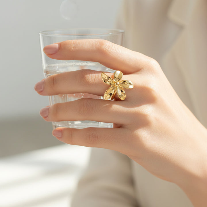 Cette bague en acier inoxydable s’inspire d’une délicate fleur à cinq pétales, avec une finition brillante qui reflète la lumière comme des gouttes de rosée, diffusant une élégance lumineuse. Les pétales aux lignes douces et fluides, finement ciselés, créent un relief subtil qui allie féminité et modernité. Que ce soit au quotidien pour apporter une touche raffinée à une tenue simple, ou pour compléter un look sophistiqué lors d’un dîner, d’une fête ou d’un rendez-vous romantique, cette bague rehausse instantanément votre style avec délicatesse et élégance.D’un diamètre d’environ 18 mm et d’une longueur d’environ 40 mm, elle est fabriquée en acier inoxydable de haute qualité, solide, résistante à l’usure, à la déformation et à la décoloration, tout en restant légère et confortable à porter. Même après un port prolongé, elle conserve son éclat et sa beauté.Plus qu’un simple bijou, cette bague est un symbole d’élégance, de raffinement et de confiance en soi. Que ce soit pour se faire plaisir ou pour offrir, elle constitue le choix idéal pour sublimer chaque moment et ajouter une touche de charme scintillant à votre style.