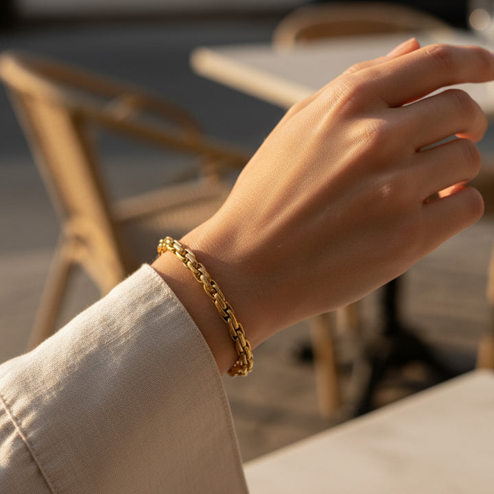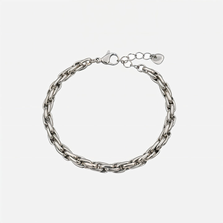Ce bracelet en acier inoxydable se distingue par son design à maillons serrés, évoquant l’apparence robuste et audacieuse d’une chaîne métallique. Sa finition brillante capte subtilement la lumière, ajoutant modernité et relief à l’ensemble. Son style métallique, à la fois affirmé et élégant, permet de rehausser une tenue quotidienne ou de compléter un look sophistiqué pour des occasions spéciales comme un dîner, une fête ou un rendez-vous romantique.Confectionné en acier inoxydable de haute qualité, ce bracelet est durable, peu susceptible de s’oxyder et de se décolorer, tout en assurant un confort optimal au poignet. D’une longueur totale d’environ 170 mm, il allie parfaitement style contemporain et praticité pour un port quotidien.Ce bracelet est le choix idéal pour ceux qui recherchent un accessoire à la fois tendance et affirmé, que ce soit pour soi-même ou comme cadeau, reflétant modernité et personnalité.