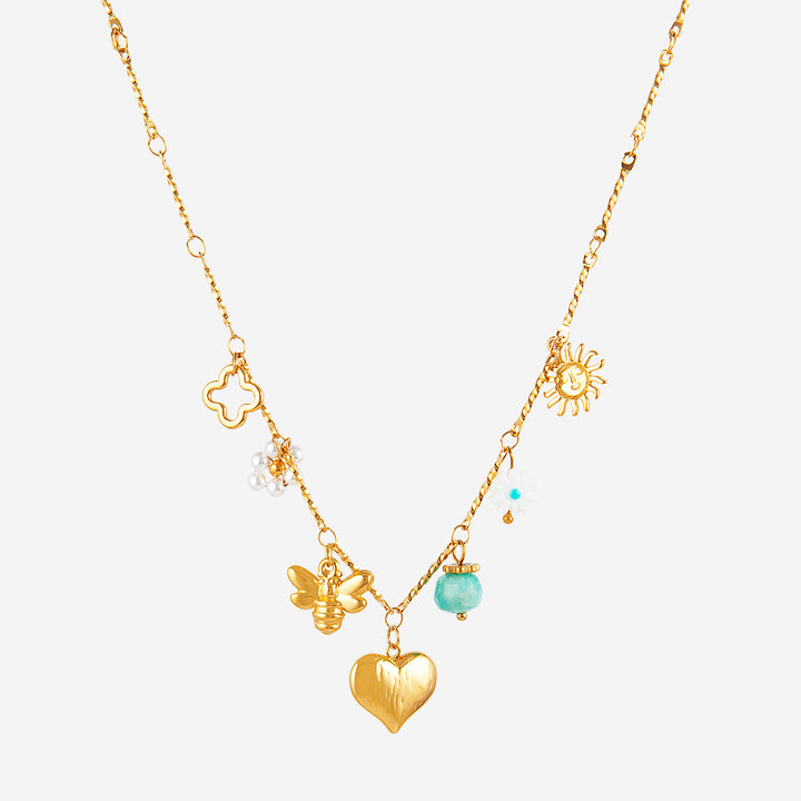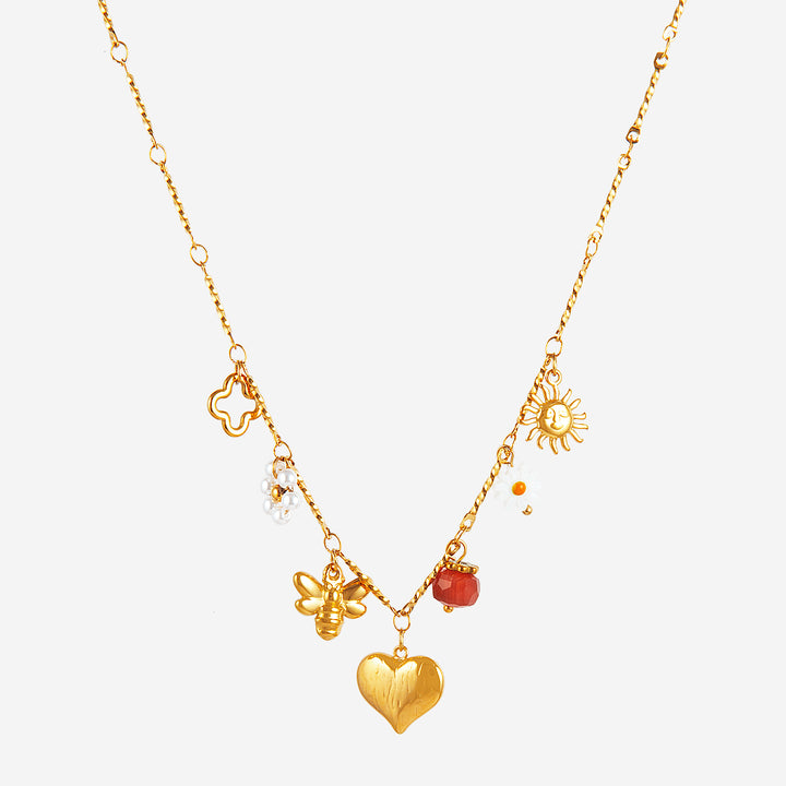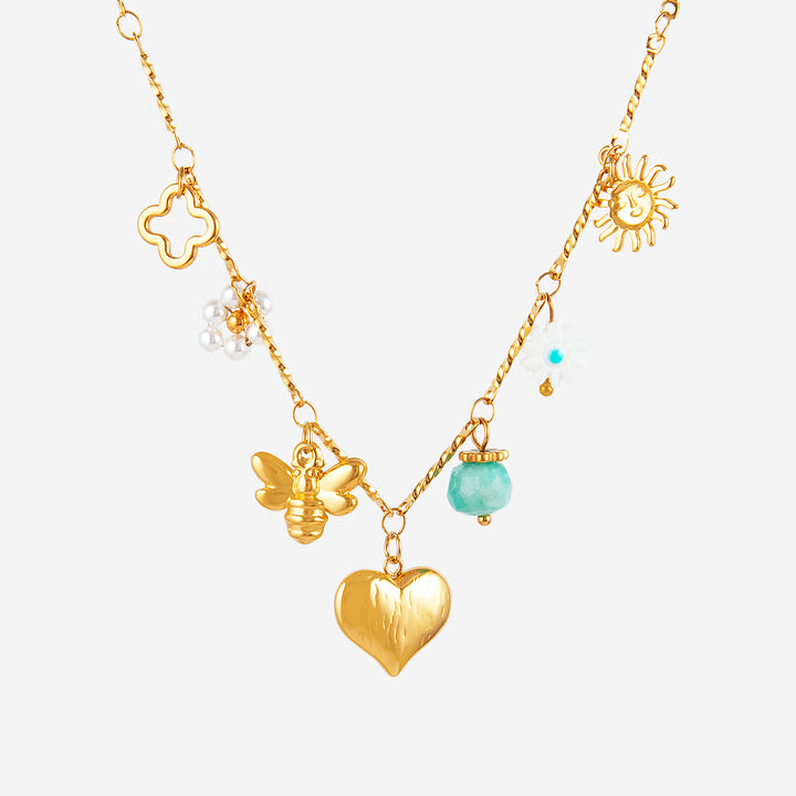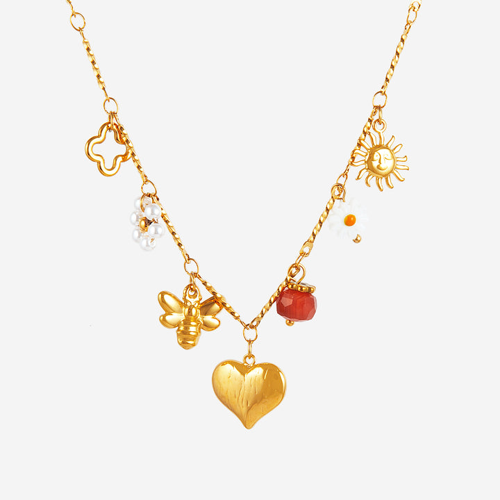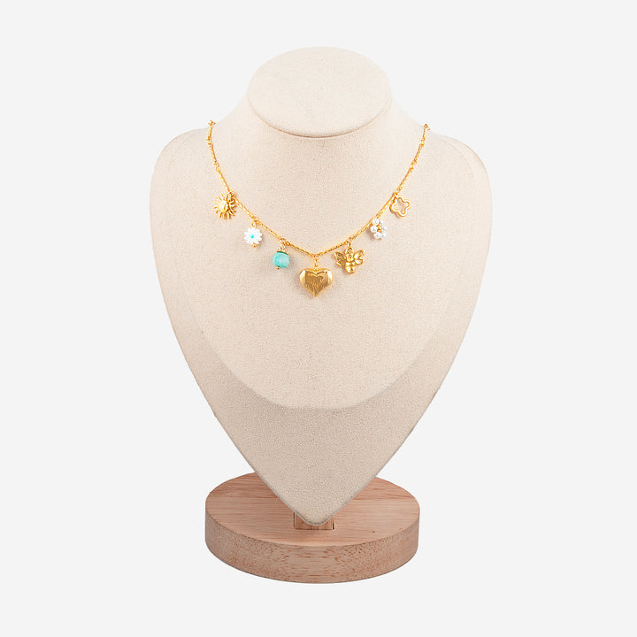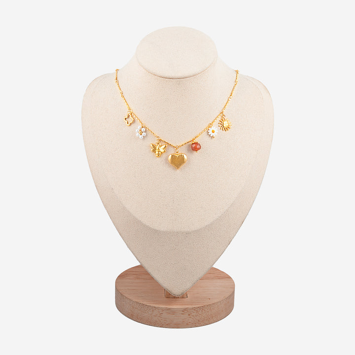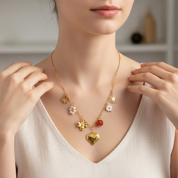 - Élégant collier breloque avec pendentif cœur et motifs floraux