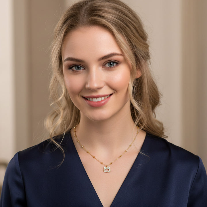 Inspiré par le design espiègle d’un petit chat, ce collier présente une forme unique en découpe délicate, avec de petits zircons incrustés sur le contour pour une touche subtile de brillance. Avec une longueur de 371 mm, il est léger et confortable à porter. Que ce soit pour le travail, une sortie décontractée ou un dîner élégant, il apporte un style doux et audacieux à votre tenue. Il peut également être superposé avec d’autres bijoux pour créer un effet de couche personnalisé, révélant ainsi votre goût et votre élégance. Confectionné en acier inoxydable de haute qualité, il allie durabilité et éclat durable, faisant de chaque port un véritable point d’attention.