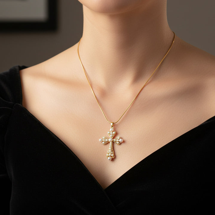 - Collier croix élégant et intemporel, orné de perles délicates