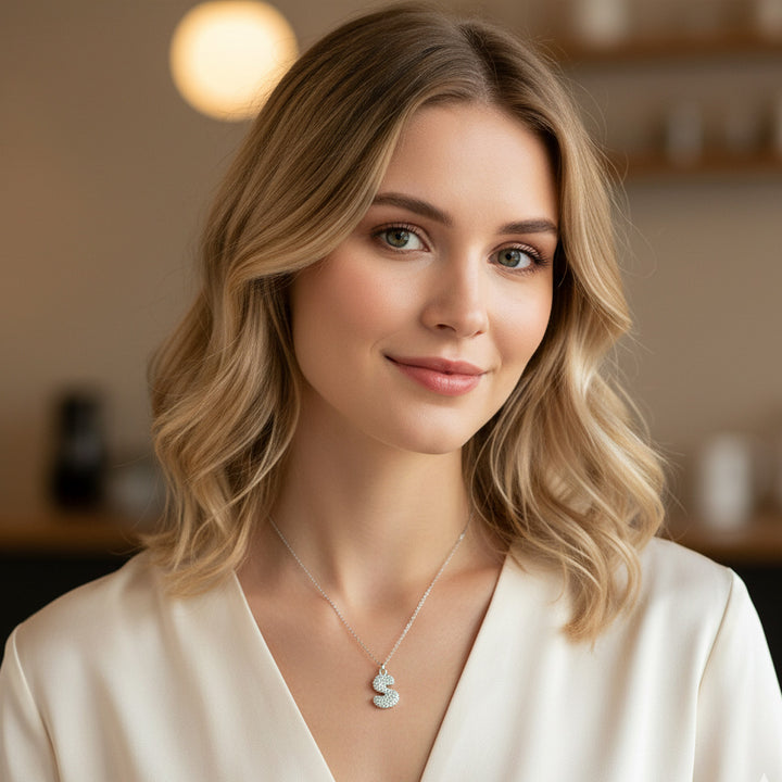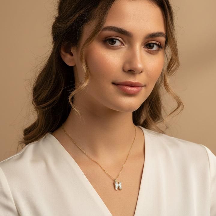 Collier en lettre bubble strass élaboré à partir d'acier inoxydable robuste. D'une longueur de 400 mm, ce bijou offre un port optimal et confortable. Les lettres bubble serties de strass brillants créent un scintillement captivant et sophistiqué. L'acier inoxydable assure une résistance exceptionnelle à l'oxydation et aux agressions extérieures, préservant l'éclat de votre accessoire au quotidien. Un choix de prestige pour sublimer votre style avec élégance intemporelle.