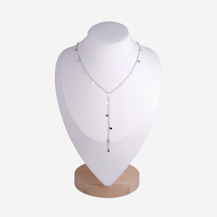 Ce collier en acier inoxydable se distingue par ses pampilles en forme de gouttes brillantes, disposées en cascade pour créer un effet fluide et élégant. Avec une longueur d’environ 390 mm et une largeur d’environ 90 mm, son design raffiné et moderne capte la lumière avec subtilité, apportant une touche glamour à votre style. Facile à porter, il peut sublimer une tenue quotidienne avec élégance ou compléter une robe chic lors d’occasions spéciales comme un dîner, une fête ou un rendez-vous romantique.