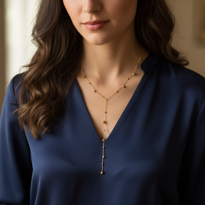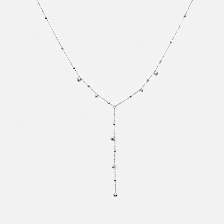 Ce collier long en acier inoxydable est orné de petites perles délicates le long de sa chaîne, créant un effet fluide et élégant, avec une longueur totale d’environ 400 mm et une largeur d’environ 110 mm. Sa silhouette élancée apporte une touche moderne et raffinée, permettant de visuellement allonger la ligne du cou. Facile à porter, il peut être associé à une tenue décontractée pour sublimer le quotidien ou à une robe chic lors d’occasions spéciales telles qu’un dîner, une fête ou un rendez-vous romantique. Fabriqué en matériau durable, ce collier allie confort et élégance pour un usage longue durée.