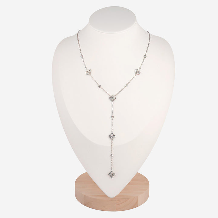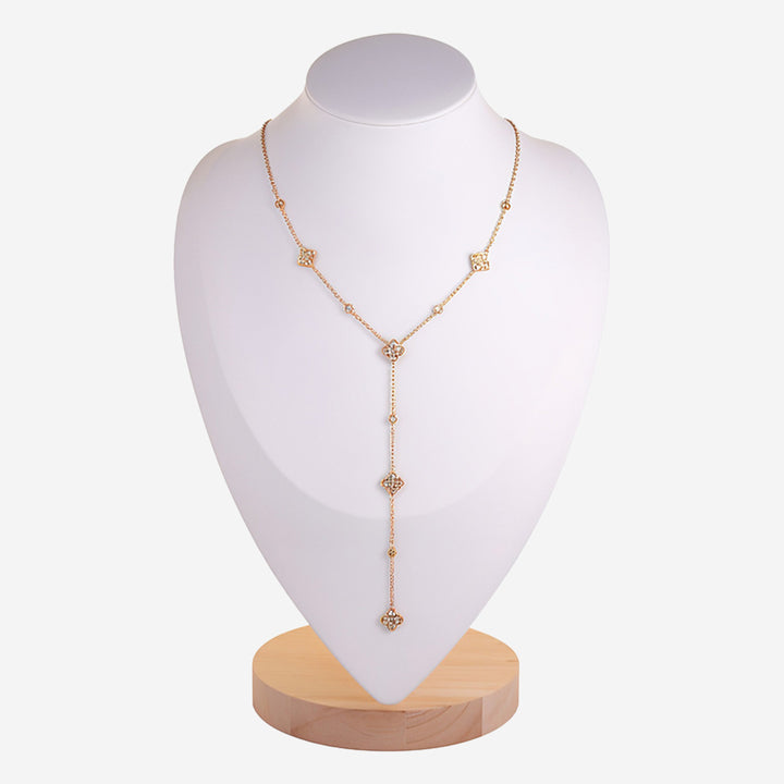 Ce collier long en acier inoxydable est orné de plusieurs pendentifs en forme de trèfle à quatre feuilles, symbolisant la chance et l’élégance. D’une longueur d’environ 390 mm et d’une largeur d’environ 110 mm, il met parfaitement en valeur la ligne du cou, révélant un style à la fois moderne et intemporel. Polyvalent, il convient aussi bien à un usage quotidien, en apportant une touche délicate et porte-bonheur à votre tenue, qu’à des occasions spéciales telles qu’un dîner, une fête ou un rendez-vous romantique.