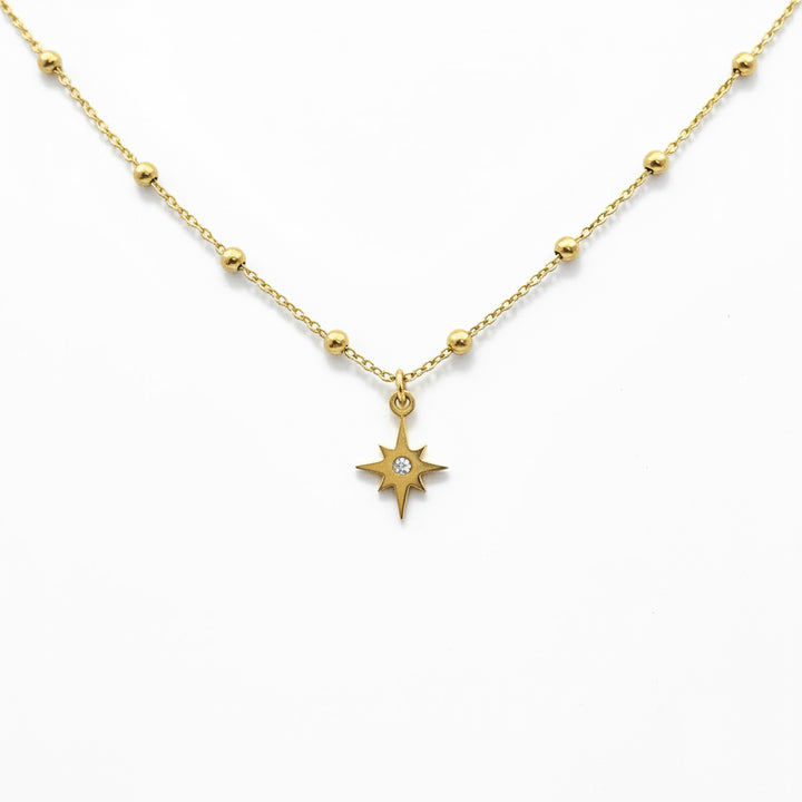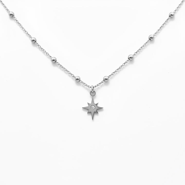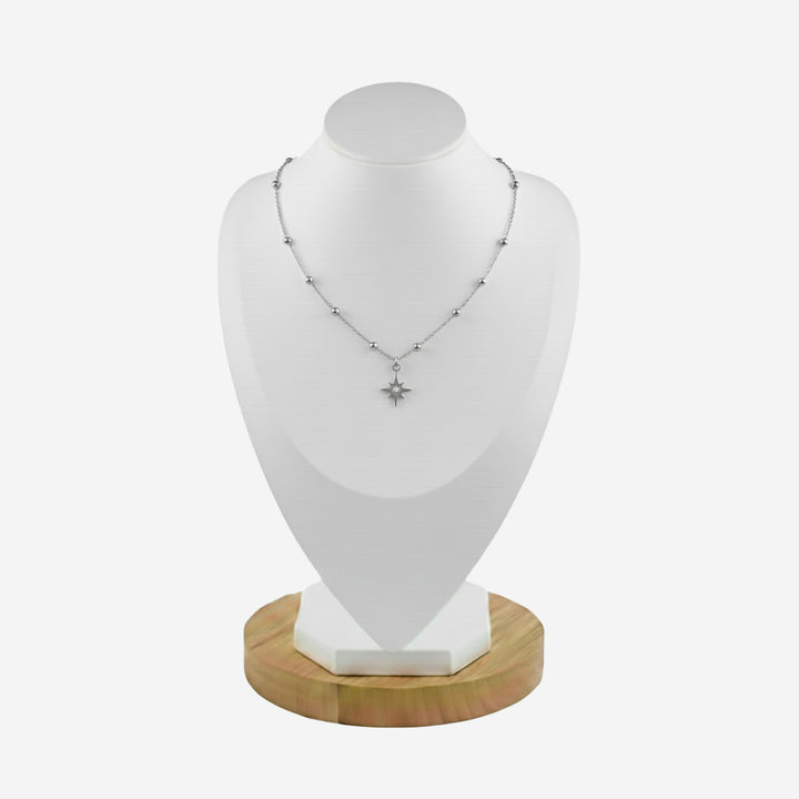 Inspiré par l’éclat discret des étoiles dans la nuit, ce collier présente des lignes fluides qui dessinent une forme unique, alliant simplicité et sens artistique. Avec une longueur de 372 mm, il est orné en son centre d’une petite pierre délicate, telle une lumière scintillante dans le ciel nocturne, apportant une touche raffinée et lumineuse à l’ensemble du design. Que ce soit pour le travail, une sortie entre amis ou un dîner élégant, ce collier sublime votre tenue avec discrétion et élégance. Sa conception légère assure un confort optimal, et il peut être porté seul pour un style minimaliste ou en superposition avec d’autres bijoux pour un look personnalisé et sophistiqué. Confectionné en acier inoxydable de haute qualité, il allie durabilité et éclat durable, offrant une élégance intemporelle à chaque instant.