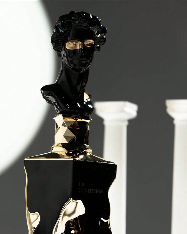 - His Confession se présente dans une bouteille artistique, véritable sculpture, reflétant l'intensité et le raffinement de ce parfum unique.